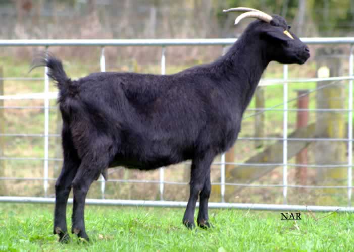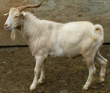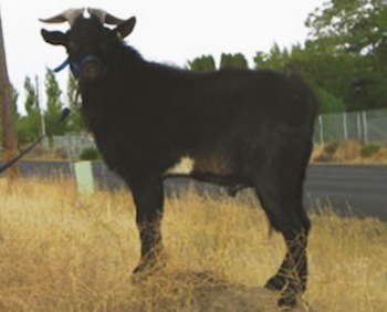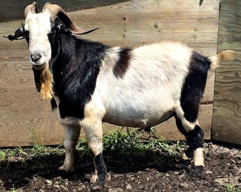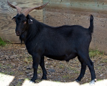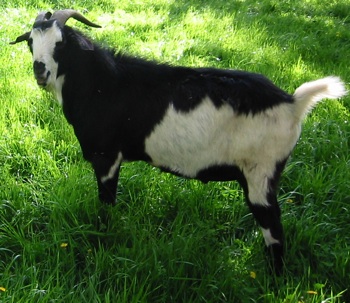 Squirt was an exceptionally large young buck, although his mature size was average. He had hard but slow growing black hooves that he passed on to his offspring. Sire of Spock and many of our best, most long-lived does. |