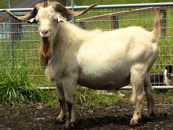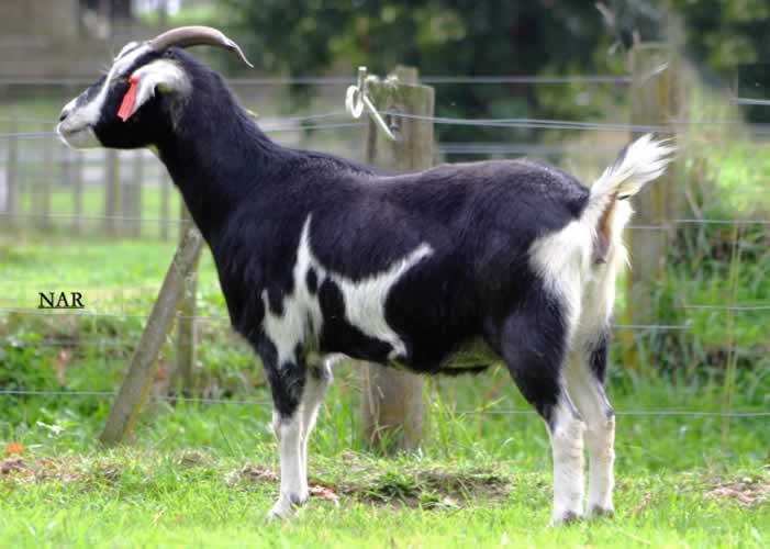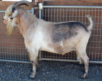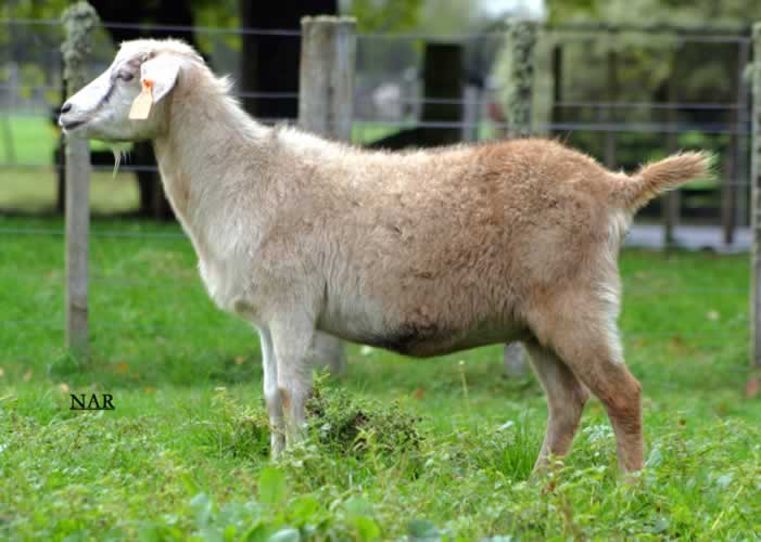 Target is a direct NZ import. As a 2 year old, he had the best parasite resistance (lowest egg counts) of any of the NZ import bucks we raised, although he later had some difficulty with winter worms. He sired many solid replacement does for us during his years as a herdsire. |